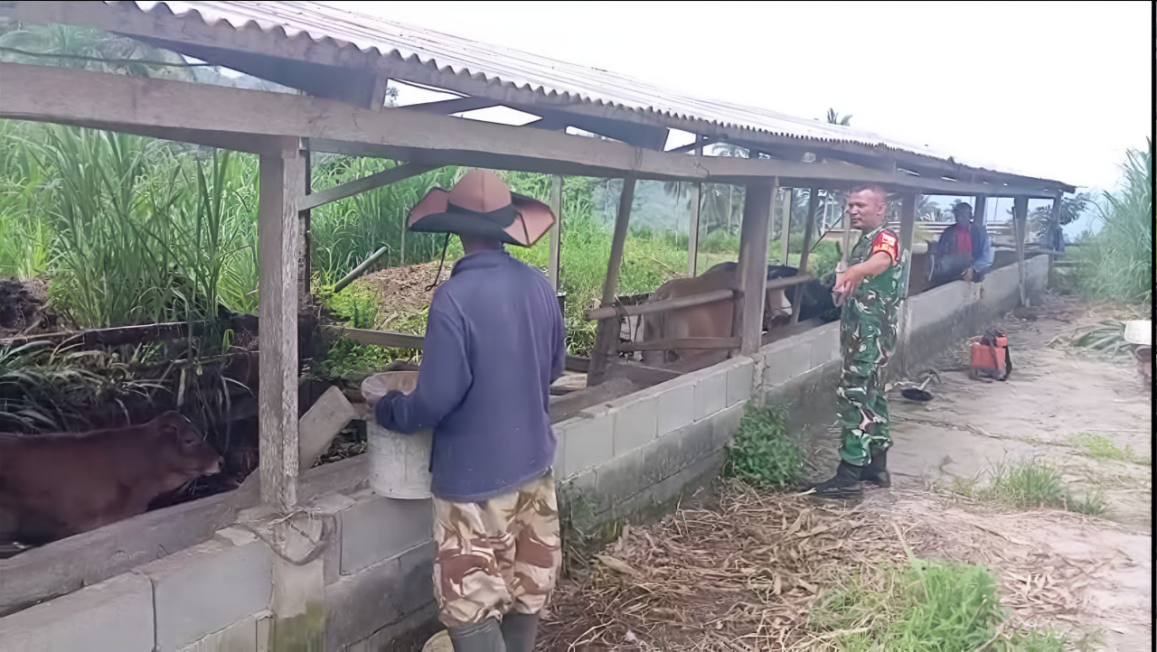 Kegiatan tersebut dilakukan sebagai bentuk kepedulian dan dukungan terhadap sektor peternakan masyarakat yang menjadi salah satu penopang ekonomi keluarga di pedesaan. Kehadiran Babinsa di tengah aktivitas warga tidak hanya memberikan motivasi, tetapi juga menumbuhkan rasa aman dan semangat gotong royong.
