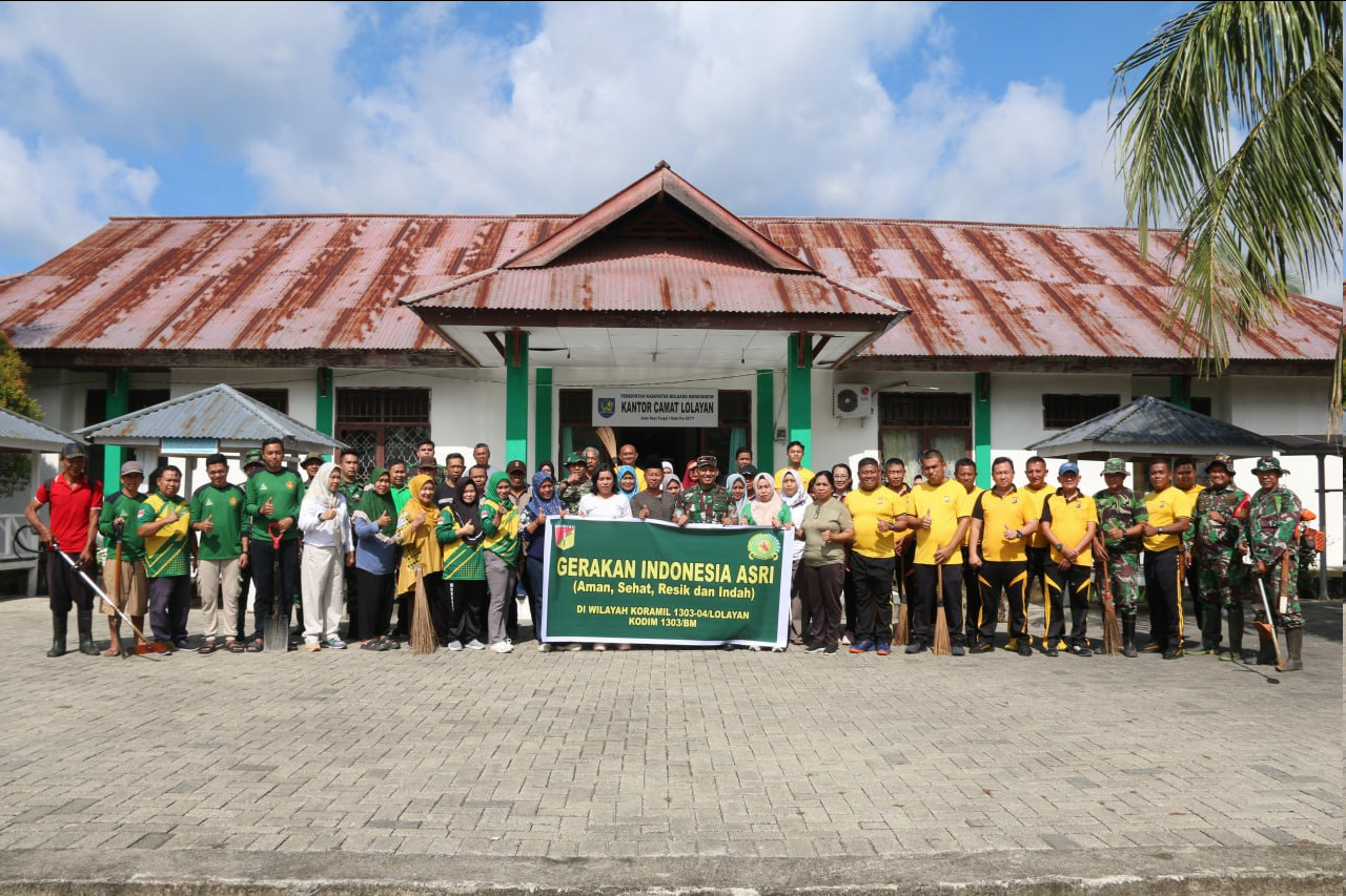 B O L M O N G — Dalam rangka menumbuhkan budaya hidup bersih serta memperkuat sinergitas lintas sektor, Koramil 1303-04/Lolayan jajaran Kodim 1303/Bolaang Mongondow melaksanakan kegiatan “Gerakan Indonesia Asri” yang dipusatkan di Kantor Kecamatan Lolayan, Kabupaten Bolaang Mongondow, dengan sasaran pembersihan Kantor Kecamatan, Puskesmas dan Kantor Urusan Agama, Jumat (27/02/2026)