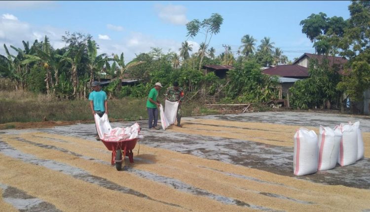 Perkuat Ketahanan Wilayah, Babinsa Bantu Warga Jemur Padi Hingga Capai 1 Ton