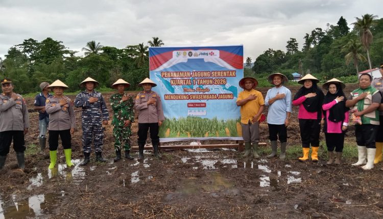 Sabtu (06/03/2026) sekitar pukul 16.10 Wita, bertempat di lahan persawahan Jalan Desa Tolondadu – Tabilaa Kecamatan Bolaang Uki Kabupaten Bolaang Mongondow Selatan telah dilaksanakan kegiatan Tanam Raya Jagung Serentak Kuartal I Tahun 2026 dalam rangka mendukung program Swasembada Pangan Nasional yang digelar oleh Polres Bolaang Mongondow Selatan.