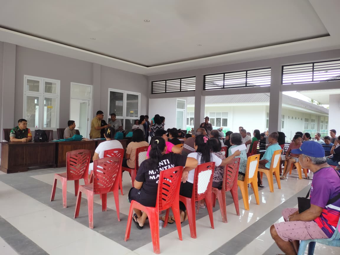 Kegiatan ini dihadiri oleh pemerintah desa, aparat terkait, serta masyarakat yang telah direlokasi dari wilayah terdampak bencana di Kabupaten Kepulauan Sitaro. Selain memastikan proses penyerahan dokumen berjalan lancar, Babinsa juga turut membantu menjaga ketertiban dan memberikan rasa aman kepada warga yang hadir.
