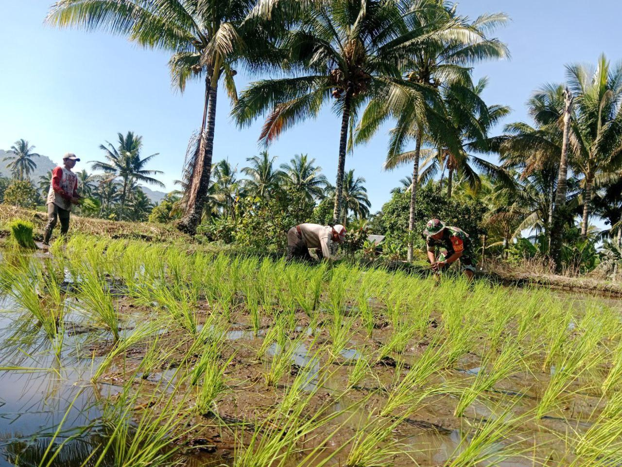 Bersama Petani, Babinsa Kobo Besar Tanam Bibit Harapan Ketahanan Pangan