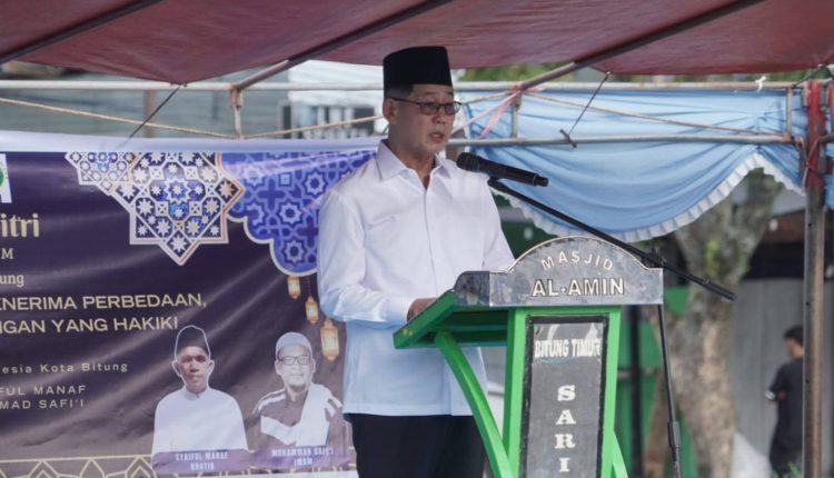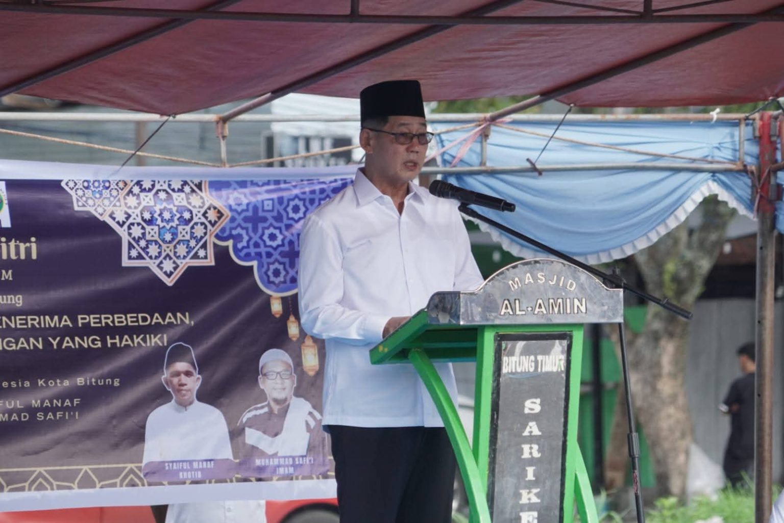 Dalam sambutannya, Wali Kota Bitung Hengky Honandar mengajak seluruh umat Muslim untuk senantiasa memanjatkan puji dan syukur ke hadirat Allah Subhanahu Wa Ta’ala atas segala rahmat dan karunia-Nya, sehingga dapat merayakan Idul Fitri dalam keadaan sehat.