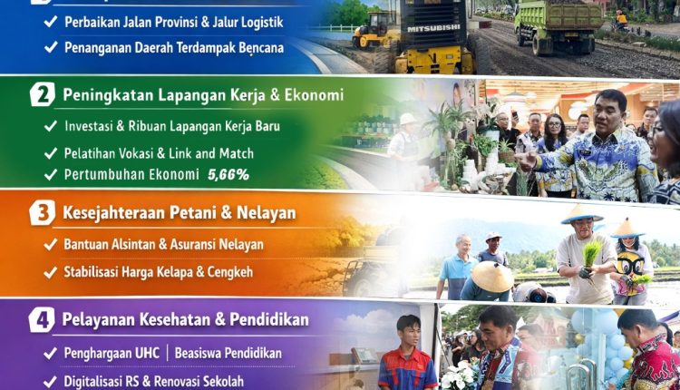 • Kesehatan: Sulut sukses meraih UHC Award 2026 sebagai bentuk jaminan kesehatan semesta. Layanan diperkuat dengan kehadiran Kapal Klinik di Sangihe-Talaud, Ambulans pelosok, serta pembangunan Gedung Pelayanan Kanker Terpadu RSUP Kandouw.