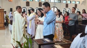 Wali Kota, Hengky Honandar SE bersama istri Ny Ellen Honandar Sondakh ikuti Misa Paskah di Gereja Stela Maris, Minggu (5/4/2026)