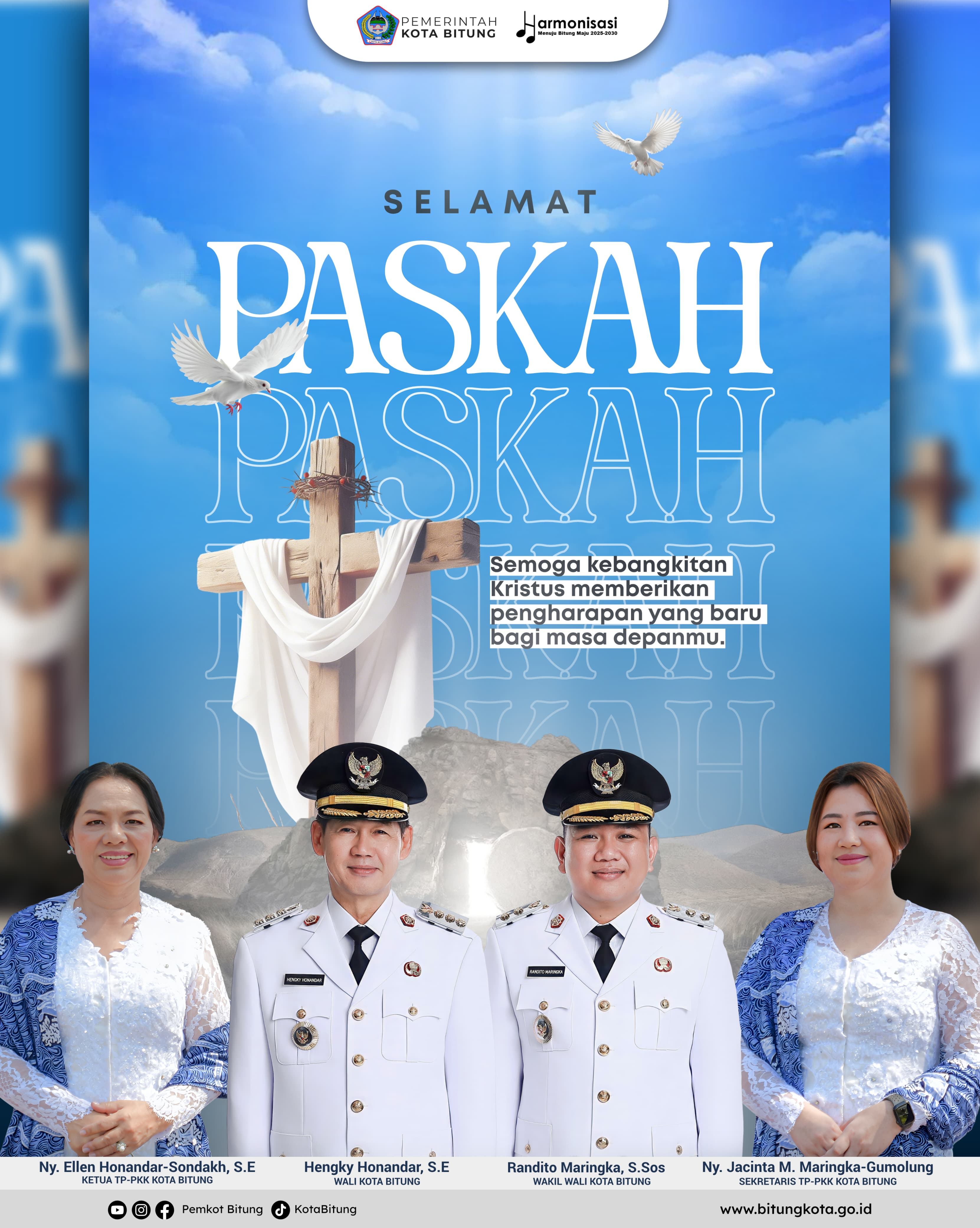 BITUNG, Indo-news.id — Pemerintah Kota Bitung menyampaikan ucapan Selamat Paskah kepada seluruh masyarakat yang merayakan, dengan harapan momentum suci ini mampu menghadirkan semangat baru dalam kehidupan sosial serta memperkuat kebersamaan di tengah masyarakat.