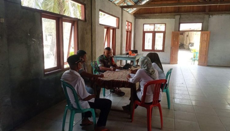 BOLMUT – Bintara Pembina Desa atau Babinsa Koramil 1303-14/Bolangitang Serda Husni Sait, melaksanakan kegiatan komunikasi sosial (komsos) bersama aparat desa dan masyarakat di Desa Saleo Satu Kecamatan Bolangitang Timur Kabupaten Bolaang Mongondow Utara, Selasa (08/04/2026).