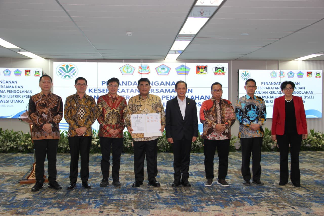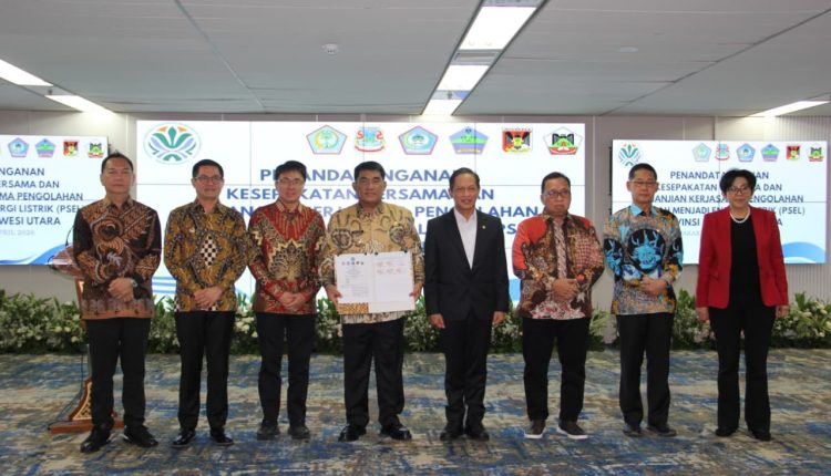 SULUT – Gubernur Sulawesi Utara (Sulut) Yulius Selvanus bersama lima Pemerintah Kabupaten/Kota menandatangani kerjasama pembangunan fasilitas Pengolahan Sampah menjadi Energi Listrik (PSEL) di wilayah Manado Raya bekerja sama dengan Kementerian Lingkungan Hidup/Badan Pengendalian Lingkungan Hidup (KLH/BPLH).