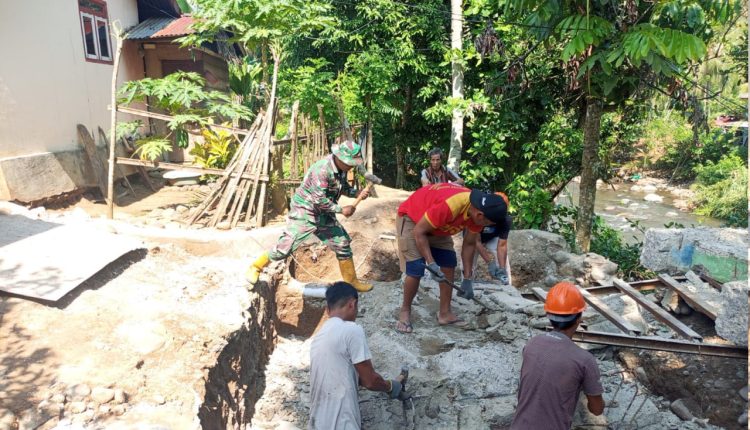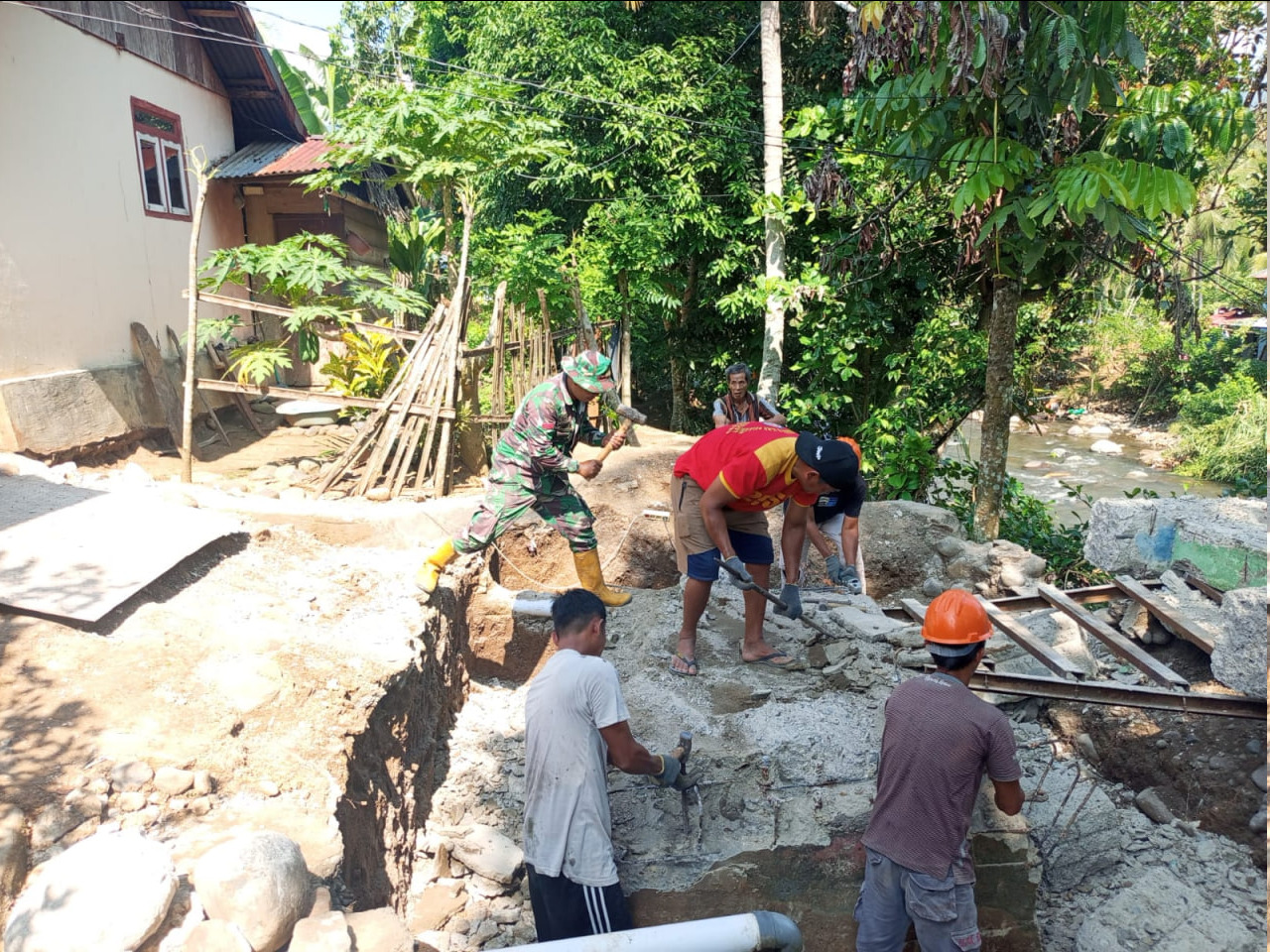 Hari ke-9, Babinsa dan Warga Bongkar Pondasi Lama Demi Jembatan Baru