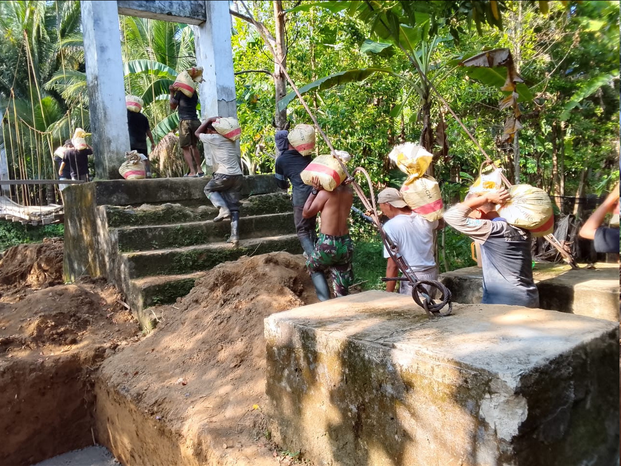 Semangat Gotong Royong, TNI dan Warga Pikul Material Bangun Jembatan Matabulu