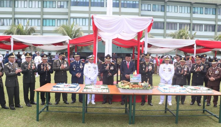 INDO NEWS – Kapolda Sulawesi Utara (Sulut) Irjen Pol Mulyatno bersama para Pejabat Utama Polda Sulut mengikuti upacara peringatan HUT ke-77 TNI, di lapangan upacara Makodam XIII/Merdeka, pada Rabu (5/10/2022) pagi.