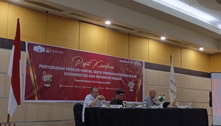Ini disampaikannya dalam giat Rapat Koordinasi (Rakor) Penyusunan Produk Hukum serta Penguatan Pengelolaan Dokumentasi dan Informasi Hukum dilaksanakan KPU Sulut di salah satu hotel di Manado, Kamis (22/08/2024).