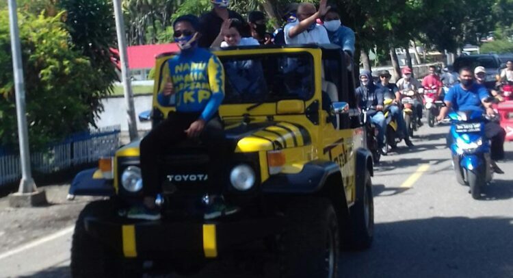 diantar 4 Partai Politik yang memiliki 10 kursi di DPRD Boltim, mengusung kedua pasangan tersebut serta, ribuan pendukung yang juga ikut sama – sama mengantar dalam proses pendaftaran Bupati dan Wakil Bupati, periode 2021-2026.