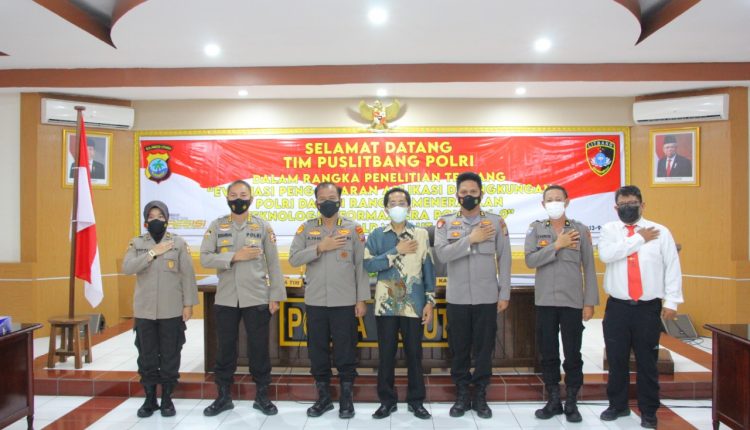 INDO NEWS – Pusat Penelitian dan Pengembangan (Puslitbang) Polri melakukan kegiatan penelitian tentang evaluasi penggelaran aplikasi di lingkungan Polri dalam rangka menerapkan teknologi informasi era police 4.0, di Polda Sulawesi Utara.